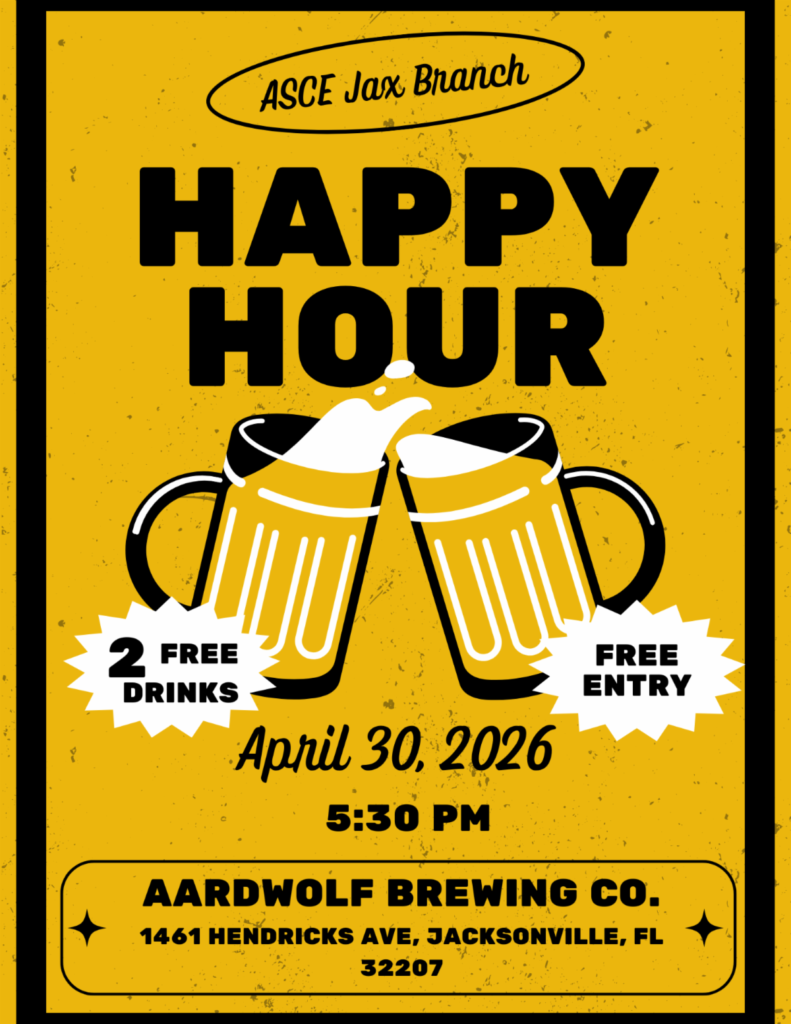 Join ASCE Jax Branch for a relaxed spring happy hour to unwind, catch up, and enjoy good company.